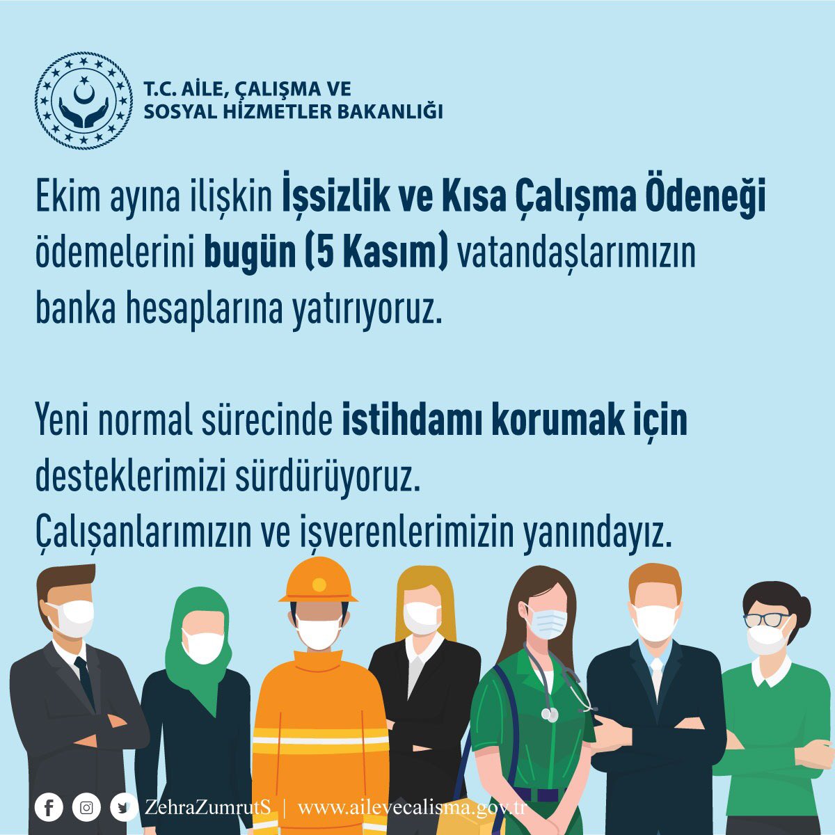 Ekim ayına ilişkin İşsizlik ve Kısa Çalışma Ödeneği ödemelerini bugün vatandaşlarımızın banka hesaplarına yatırıyoruz.